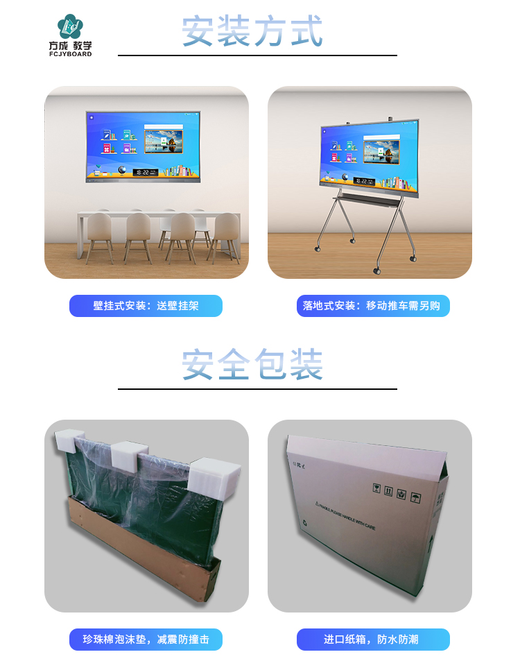 會議平板一體機-超窄邊框三等邊超窄邊框設計,推拉門鎖保護,4K超高清顯示,以人機交互的方式,搭載互動白板和無線投屏軟件,實現多人書寫、互聯互通的互動教學模式,豐富課堂內容,提高學習氛圍。